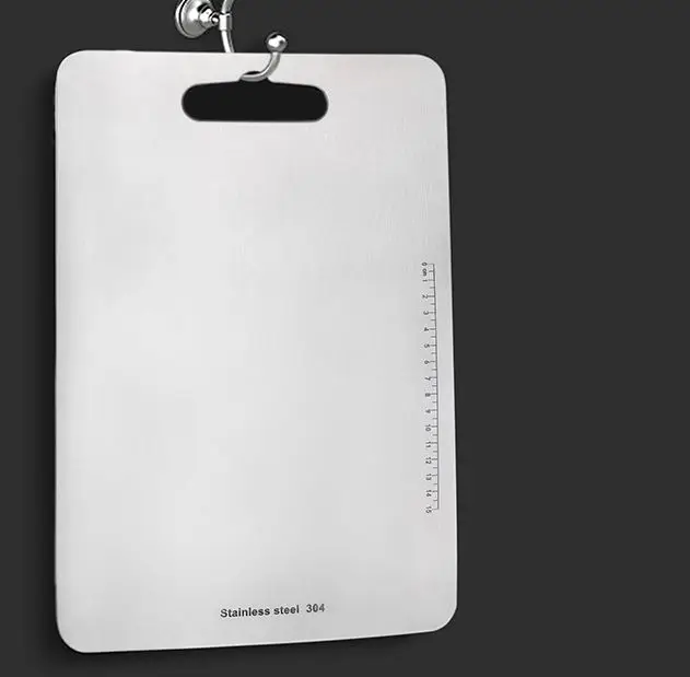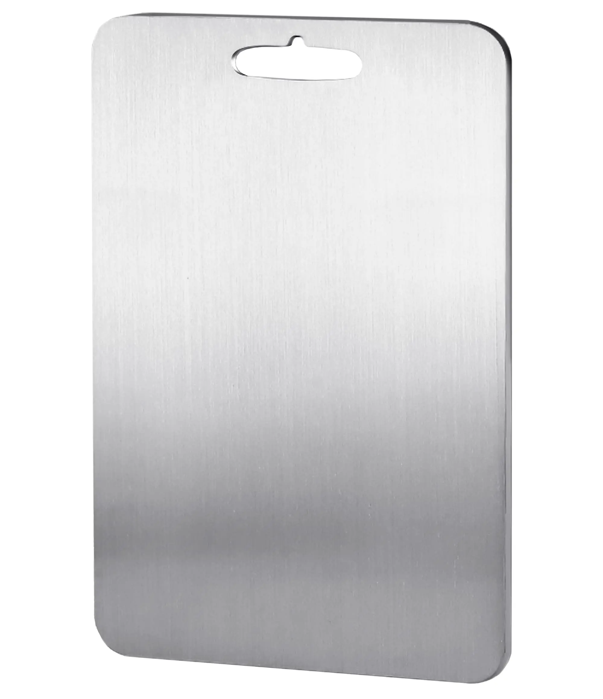 Slight scratches may appear over time due to knife usage. This is completely normal for stainless steel cutting boards and does not affect its performance.
